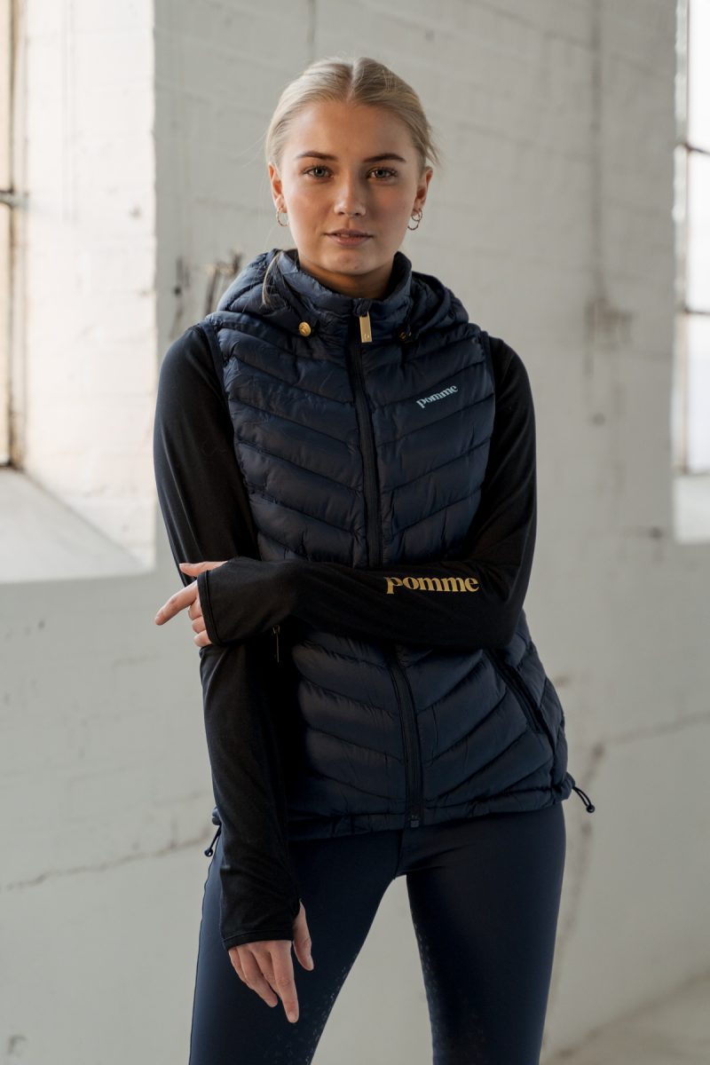 Warm, comfy and lightweight classic. Pomme Ingrid Light Vest mixes function with design and gives you a new favorite essential for your riding wardrobe. Developed for the modern rider who wants to be able to move easily between the stable, competitions and home.
