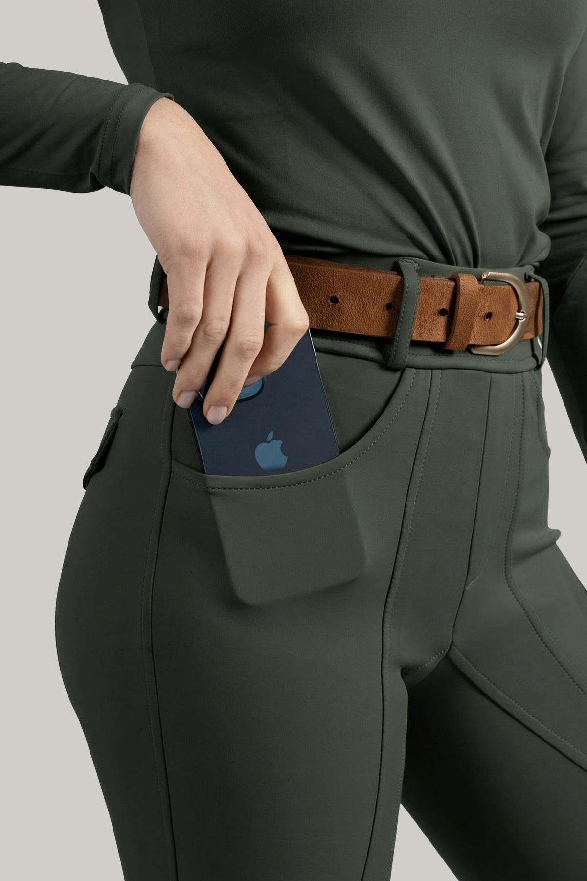 The Pomme Fay Breeches feature two front pockets perfect for your mobile phone or small essentials, along with faux flap pockets at the back for added style. With no front zipper or buttons, they offer a seamless look, giving you the best of both tights and traditional breeches.