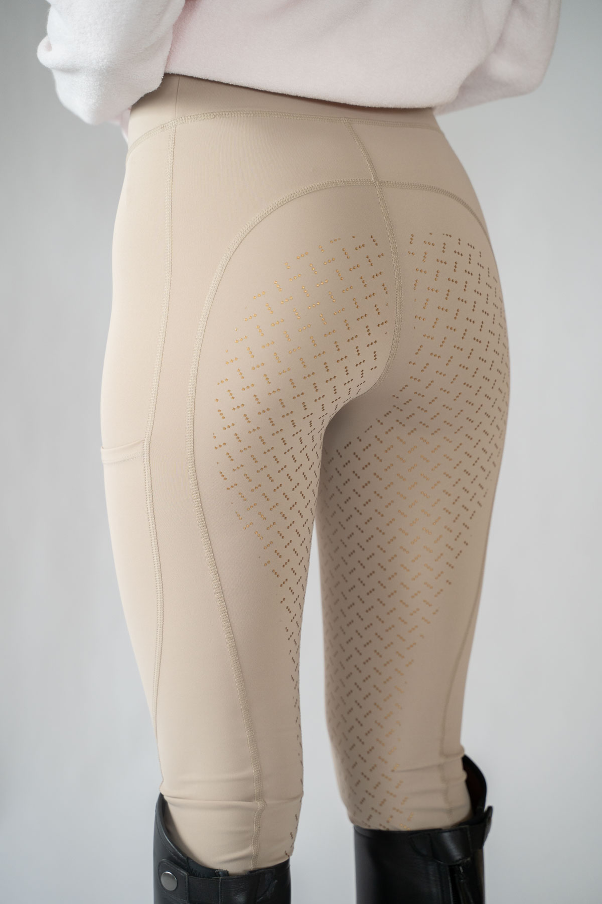 Millie isn’t your average pair of riding leggings. She’s the one you reach for when your day starts at the stables, ends at the gym, and might include a grocery run (still in your boots—no shame). Made for movement, these high-waisted riding leggings are crafted in a soft, sculpting 4-way stretch that breathes, flexes, and fits like it was made just for you. The silicone grip gives you extra security in the saddle, while the supportive waistband stays put through every ride, workout, or busy day. Designed with discreet side pockets on both legs, Millie keeps your phone or essentials right where you need them. Whether you’re training, hacking out, or just living your best barn life, Millie’s here to keep you comfy, confident, and totally ride-ready. Details you’ll love: