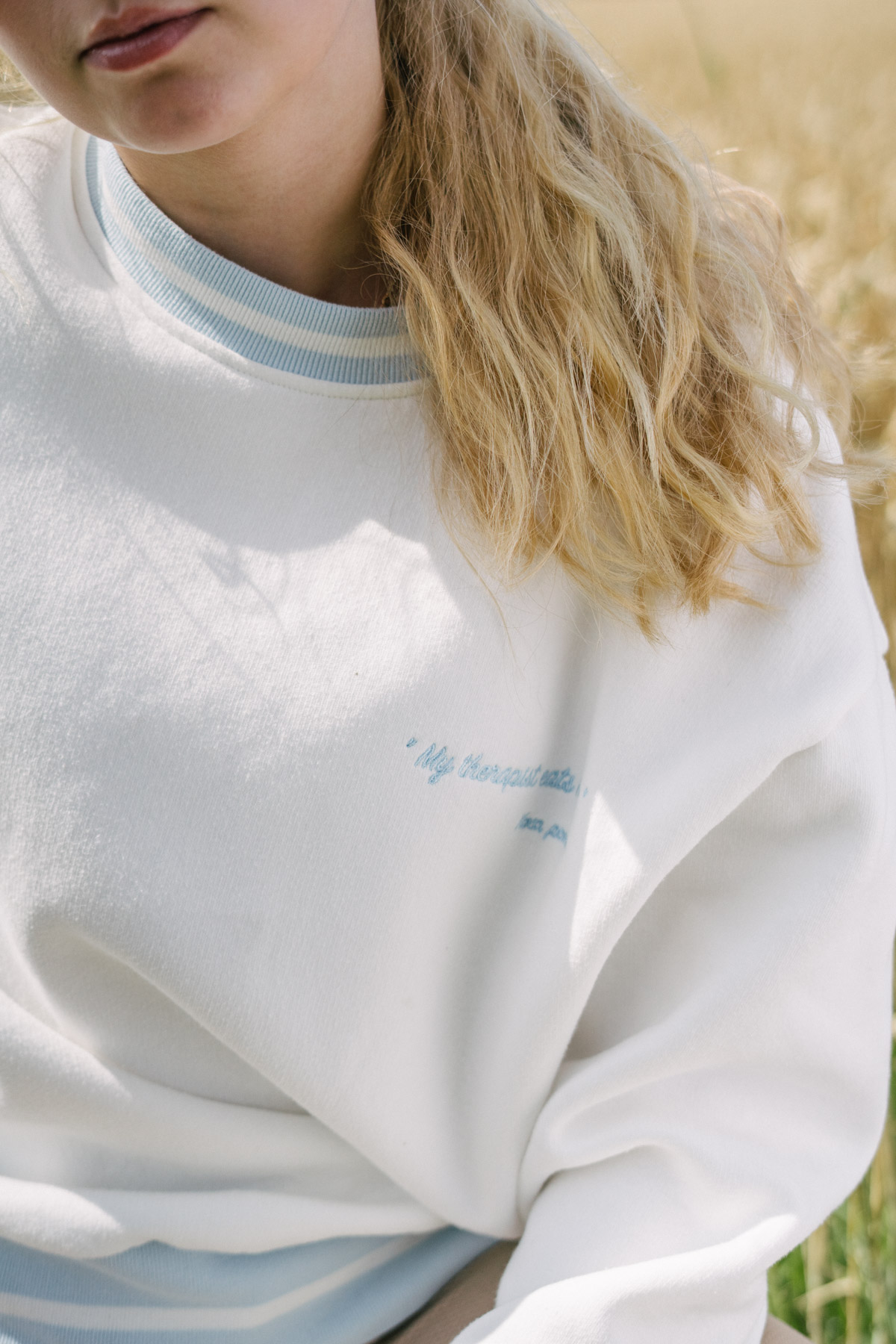 Crafted from soft and cozy fabric, it guarantees ultimate comfort while in the saddle. The loose and comfortable fit provides unrestricted movement, allowing you to fully immerse yourself in your passion for riding. Embroidery text on front and elegant blue details on the sleeves and neck.