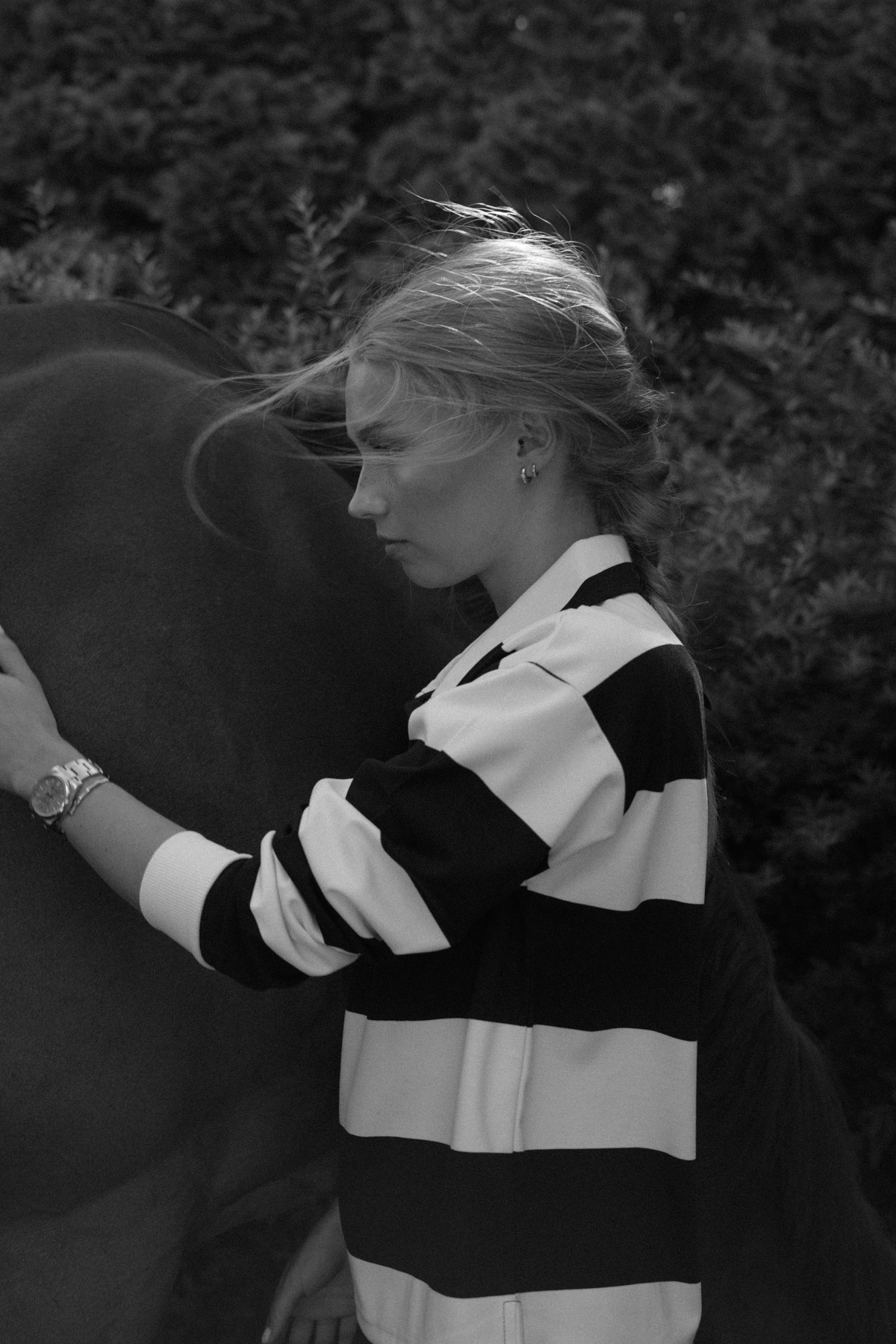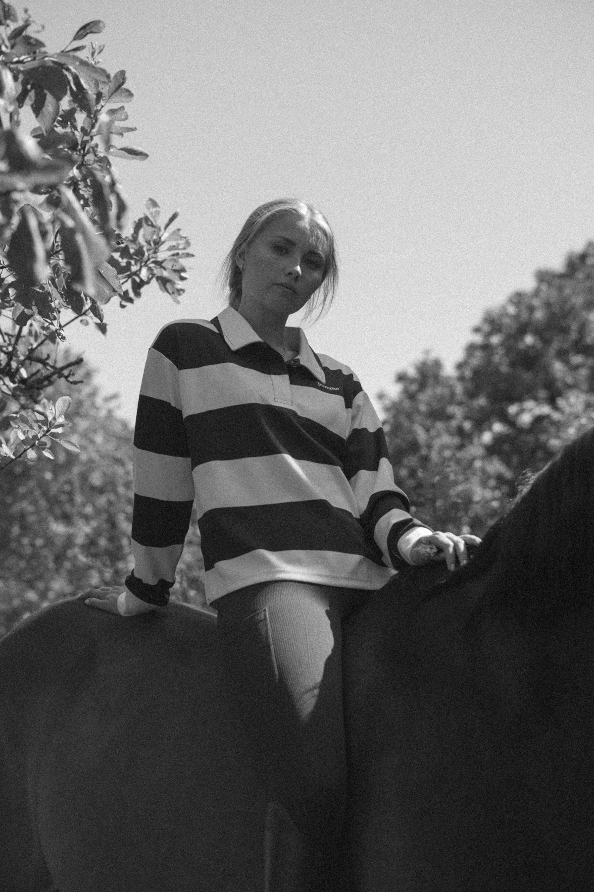 Featuring broad, bold stripes, a refined polo collar, and a button placket running from the chest to the neckline, this long-sleeve shirt combines classic equestrian elegance with modern versatility. The premium material ensures lasting softness and stretch for all-day comfort, whether in the saddle or during everyday wear.