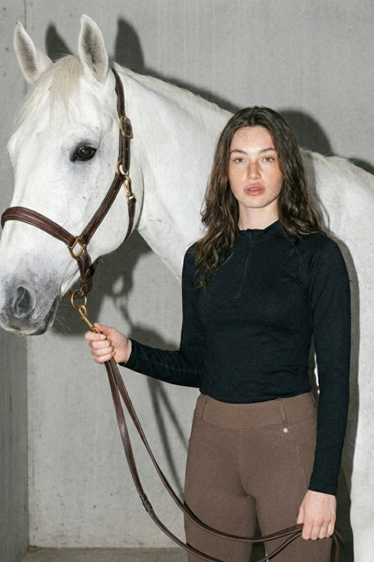 Ride in style with Rose Seamless Riding Top. Crafted with structured fabric, this top offers support during horseback sessions or workouts. The ventilated material keeps you cool and dry, making it perfect for any ride. With its long sleeves and ventilated material, comfort meets performance.
