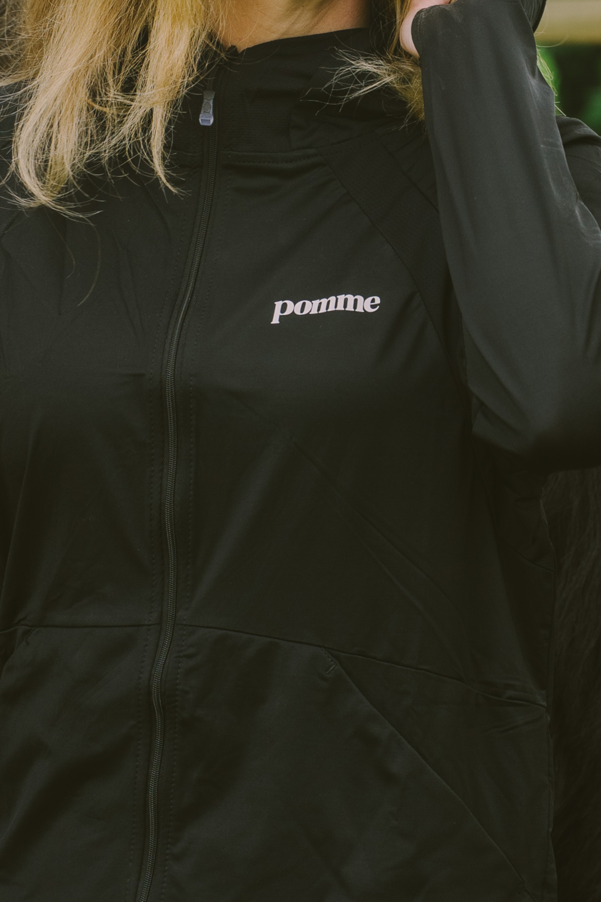 Made from a featherlight technical fabric (88% Polyamide, 12% Elastane), the Clara moves with you while keeping you cool under pressure. A high collar and adjustable hood provide extra coverage, and the removable visor on the hood offers a smart, versatile touch for varying weather conditions. Two zippered side pockets keep essentials secure, while a front zipper allows for easy layering and ventilation.
